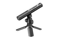 Equipped with a 1/4" cold shoe base, it mounts to your camera or tripod and transforms into a compact shotgun-style mic.