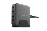 The current range includes OnePlug 25W 2-Port Mini Charger (in white), OnePlug 67W 3-Port GaN Chager (in black and in white), and OnePlug 100W 4-Port GaN Desktop Charger (in grey). All support Power Delivery and Qualcomm Quick Charge 3.0 technologies.